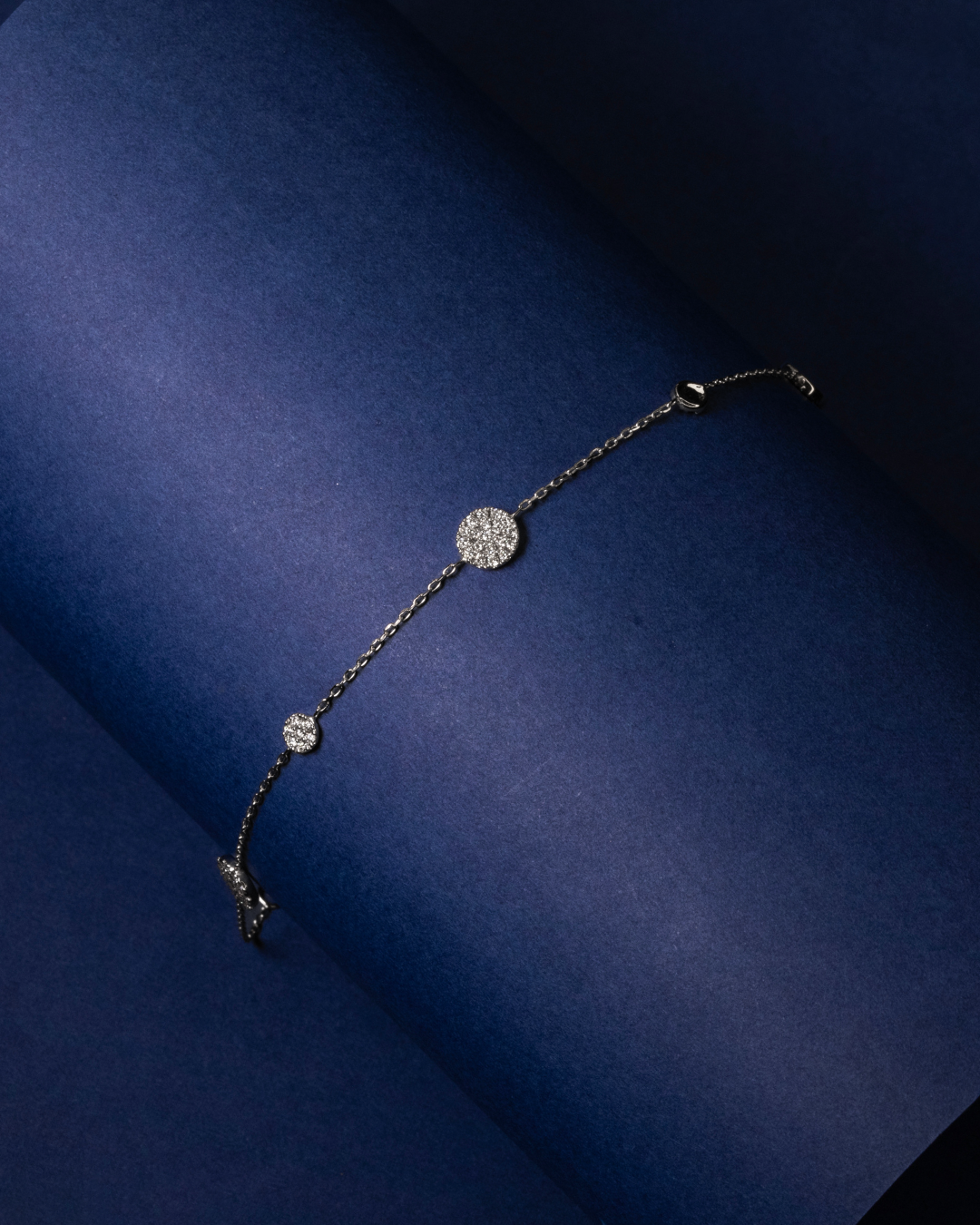 مصمم من 1.69 غرام من الذهب الأبيض عيار 18 قيراط، يتميز سوار ستاردست بـ 66 حجر ماس دائري يلمع ببريق ناعم يشبه لمعان النجوم. تصميمه الراقي والأنيق يسمح للأحجار بالتقاط الضوء بشكل رائع، ليخلق بريقًا فاخرًا ورقيقًا في الوقت نفسه.
