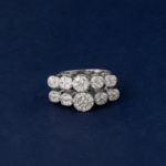 مصاغ من 7.77 غرام من الذهب الأبيض عيار 18، صُمم هذا الخاتم بمقاس 54 ليجمع بين الفخامة الهادئة والبريق الراقي. تم ترصيع 53 ماسة مستديرة بإجمالي 0.926 قيراط بعناية فائقة لخلق عرض متلألئ يلتقط الضوء بشكل رائع. تم اختيار كل ماسة بنقاء SI1 ولون I، لتمنح الخاتم توازنًا متناغمًا بين اللمعان والأناقة الراقية.