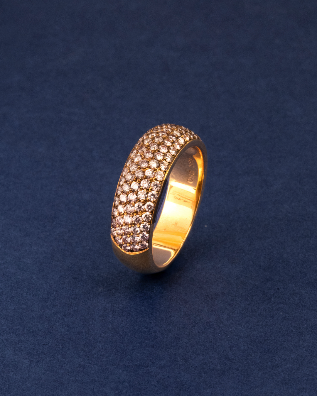 التصميم 89 ماسة وردية مستديرة بإجمالي 0.95 قيراط، لتخلق عرضًا دقيقًا وجذابًا من اللون والبريق. تم اختيار كل ماسة بعناية لنقاء VS1 ولون H، مما يضمن لمسة متألقة وراقية تكمل جمال الذهب الوردي المصقول.