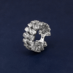 مصنوع من الذهب الأبيض عيار 18 قيراطًا ويزن 5.33 غرام، هذا الخاتم الرائع يجمع بين الانحناءات الرشيقة والبريق المشرق.