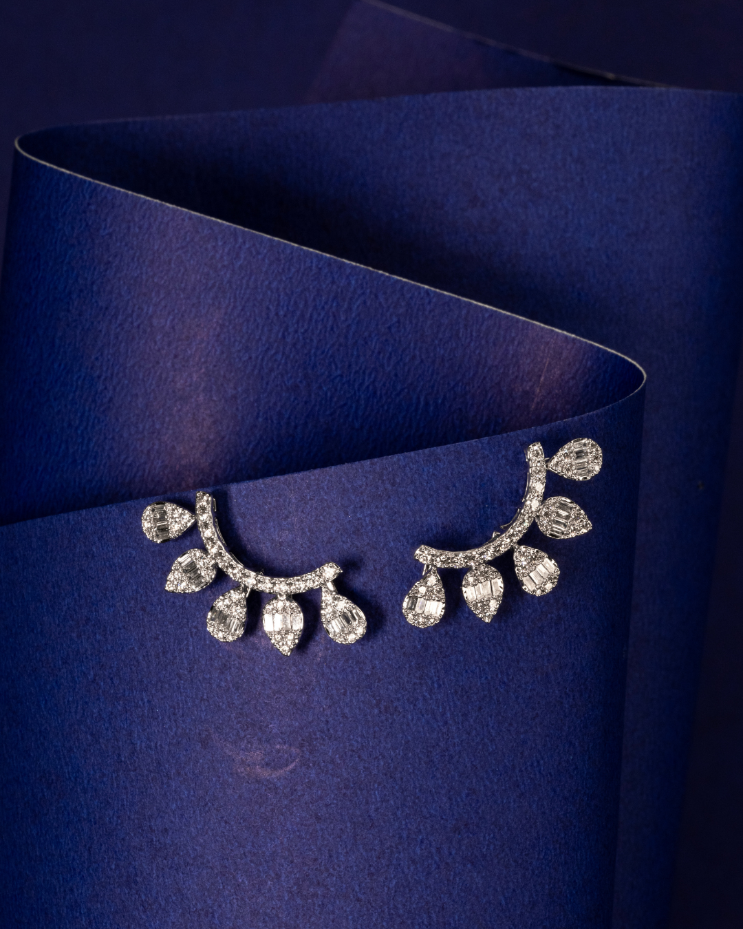 تتمتع هذه الأقراط ببريق خالد وأناقة لا تنتهي، مصنوعة من 3.86 غرام من الذهب الأبيض عيار 18 قيراطًا، لتضفي دفئًا ناعمًا ورومانسيًا يليق بكل لون بشرة. تم تصميمها لتتألق، حيث تحتوي على صفوف دقيقة من الألماس تتلألأ مع كل حركة.