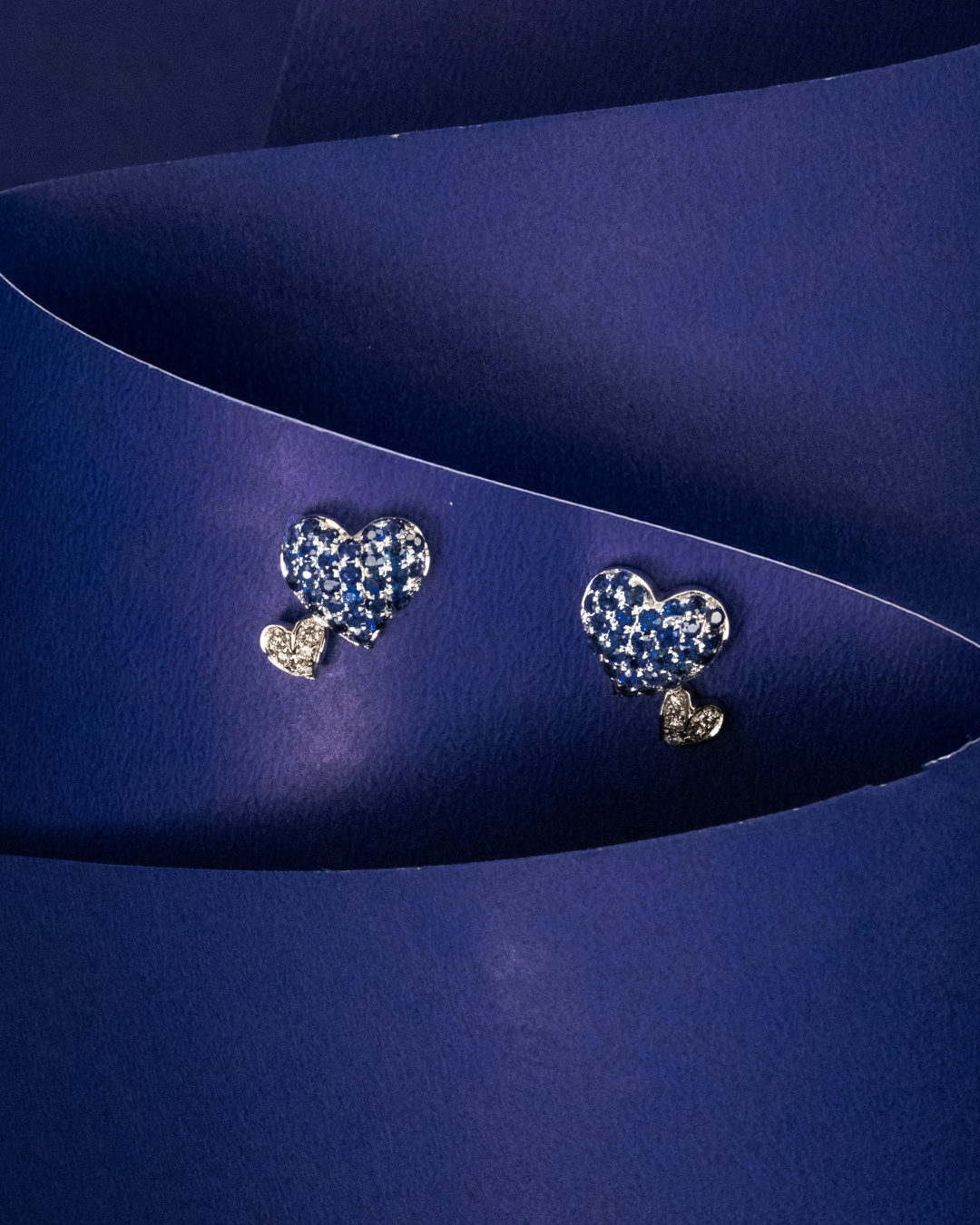 Crafted from 4.26 grams of 18K white gold, these earrings blend timeless elegance with a touch of celestial charm. A delicate arrangement of diamonds and sapphires brings a graceful interplay of shimmer and deep blue radiance.