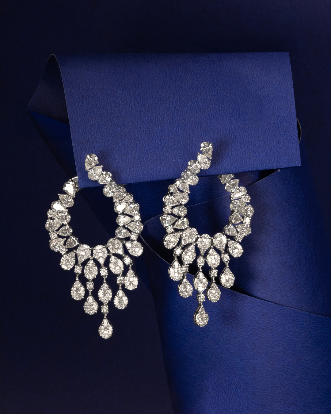 مصنوعة من 19.21 غرام من الذهب الأبيض عيار 18، تُعد هذه الأقراط المذهلة عرضًا رائعًا للتصميم المتقن والبريق متعدد القصات. تم اختيار كل ماسة بعناية وترتيبها لخلق تدفق سلس من التألق، مما يوفر تفاعلًا رائعًا بين الشكل والضوء والفخامة.