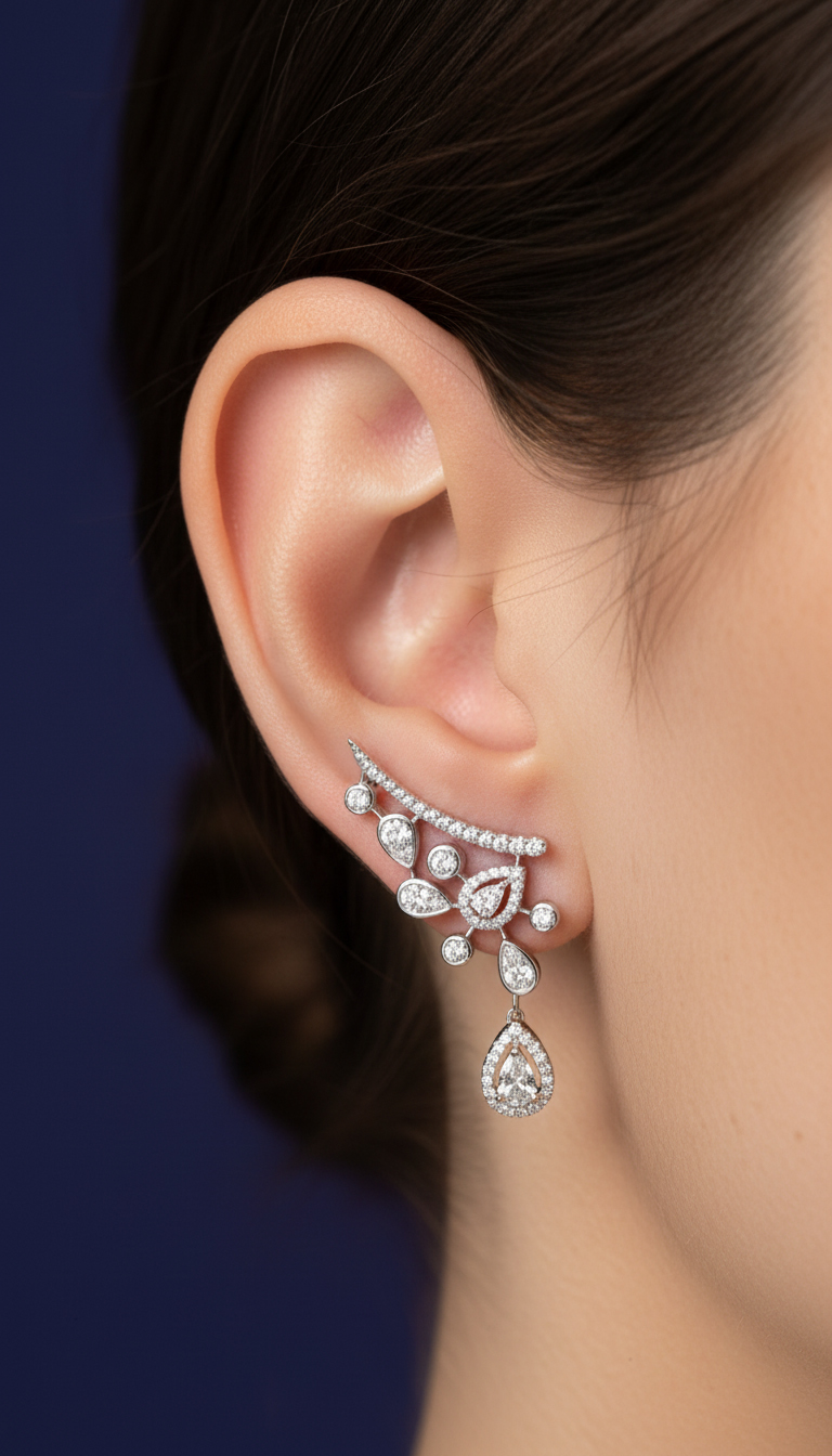 Crafted in 6.25 grams of 18K white gold, these elegant earrings are designed to bring timeless sparkle and sophistication to every moment.