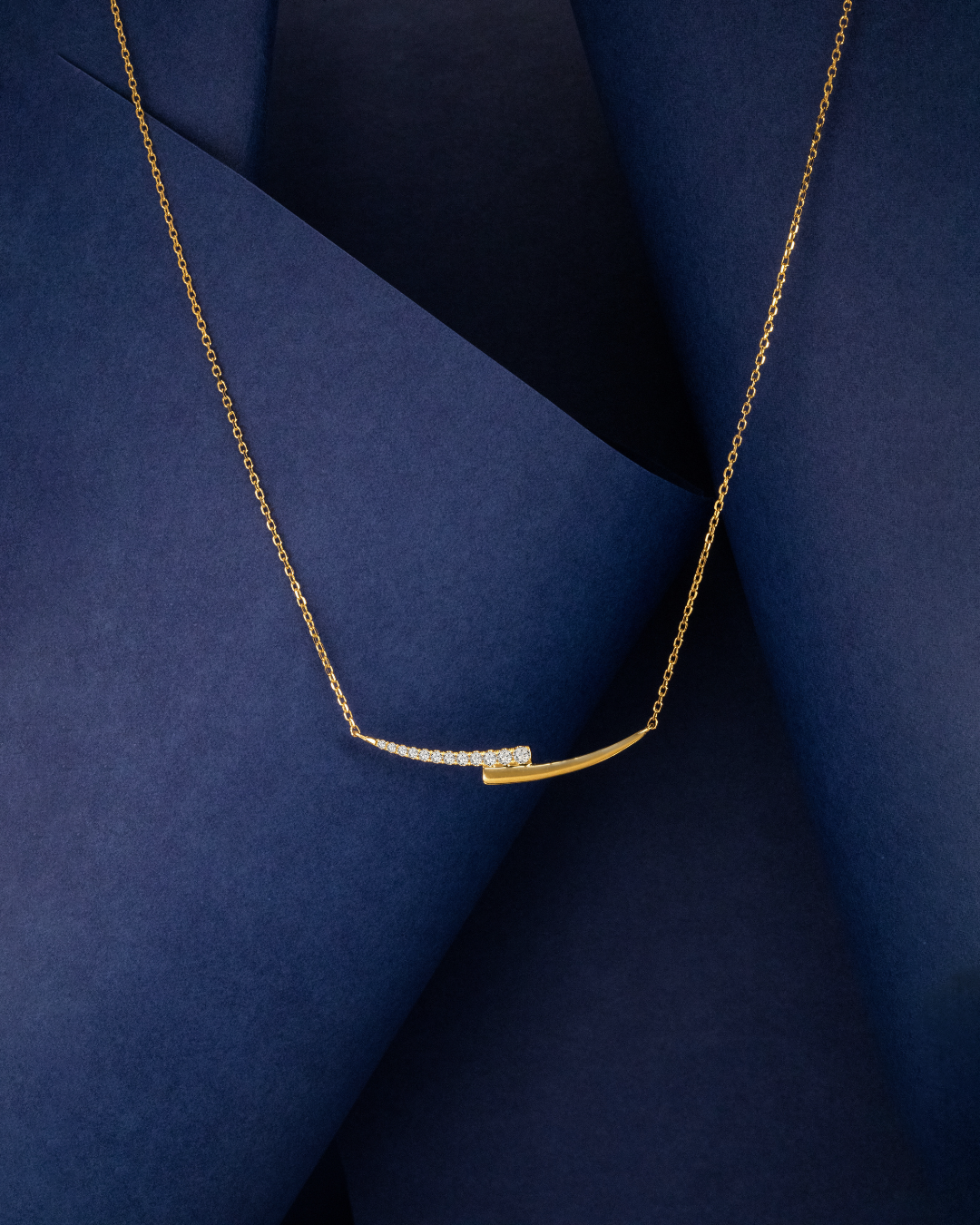 Crafted in 3.22 grams of 18K yellow gold, this elegant necklace features 12 round-cut diamonds that shimmer with refined brilliance. The warm tone of the gold beautifully complements the sparkle of the diamonds, creating a sophisticated and timeless design.