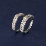 Crafted in 6.1 grams of 18K white gold, this size 53 ring combines refined elegance with a dazzling display of sparkle. One hundred eighteen round-cut diamonds, totaling 0.881 carats, are meticulously set to create a continuous shimmer that catches the light from every angle. Each diamond is selected for SI1 clarity and I color, offering a subtle yet captivating brilliance that enhances the ring’s sophisticated design.