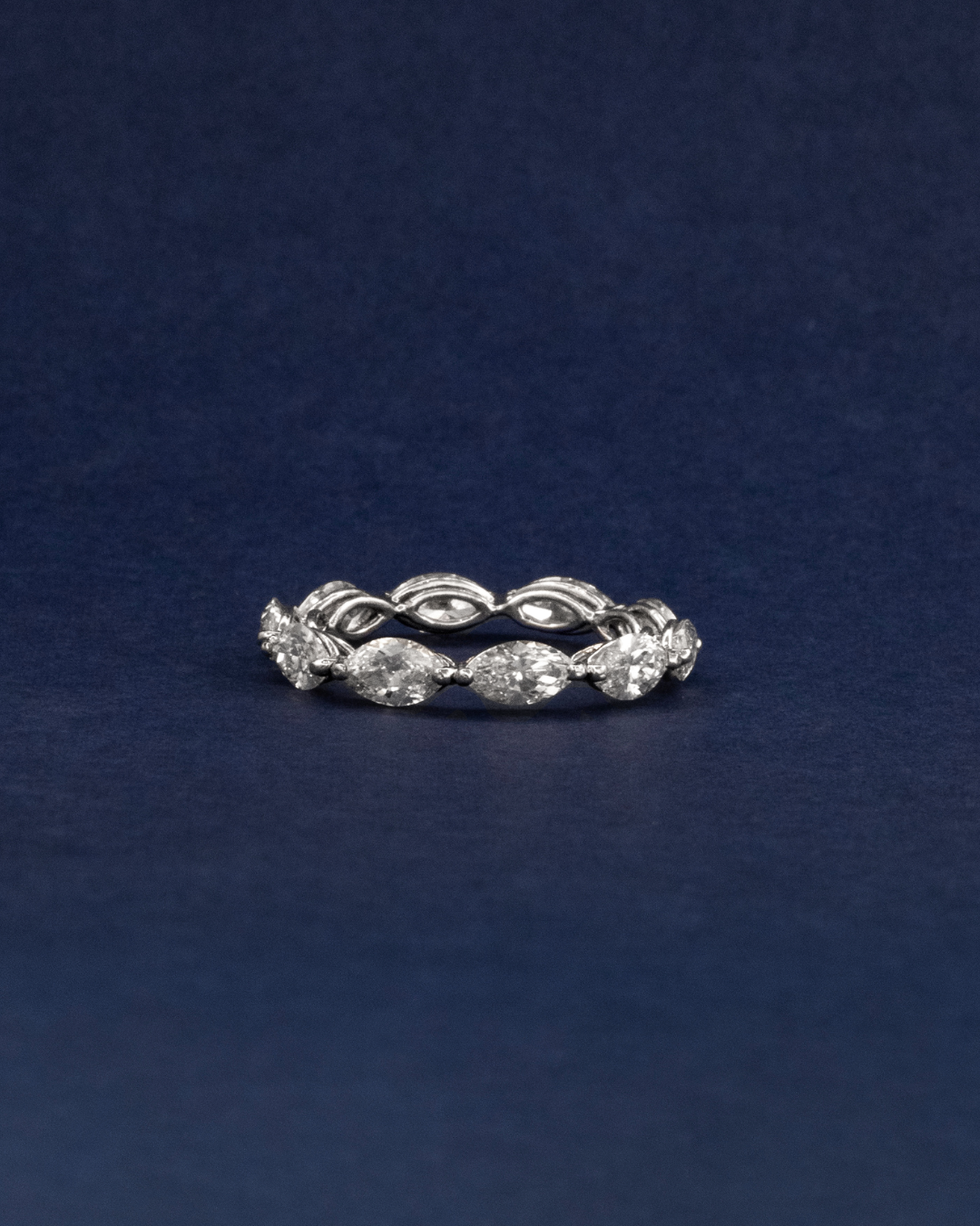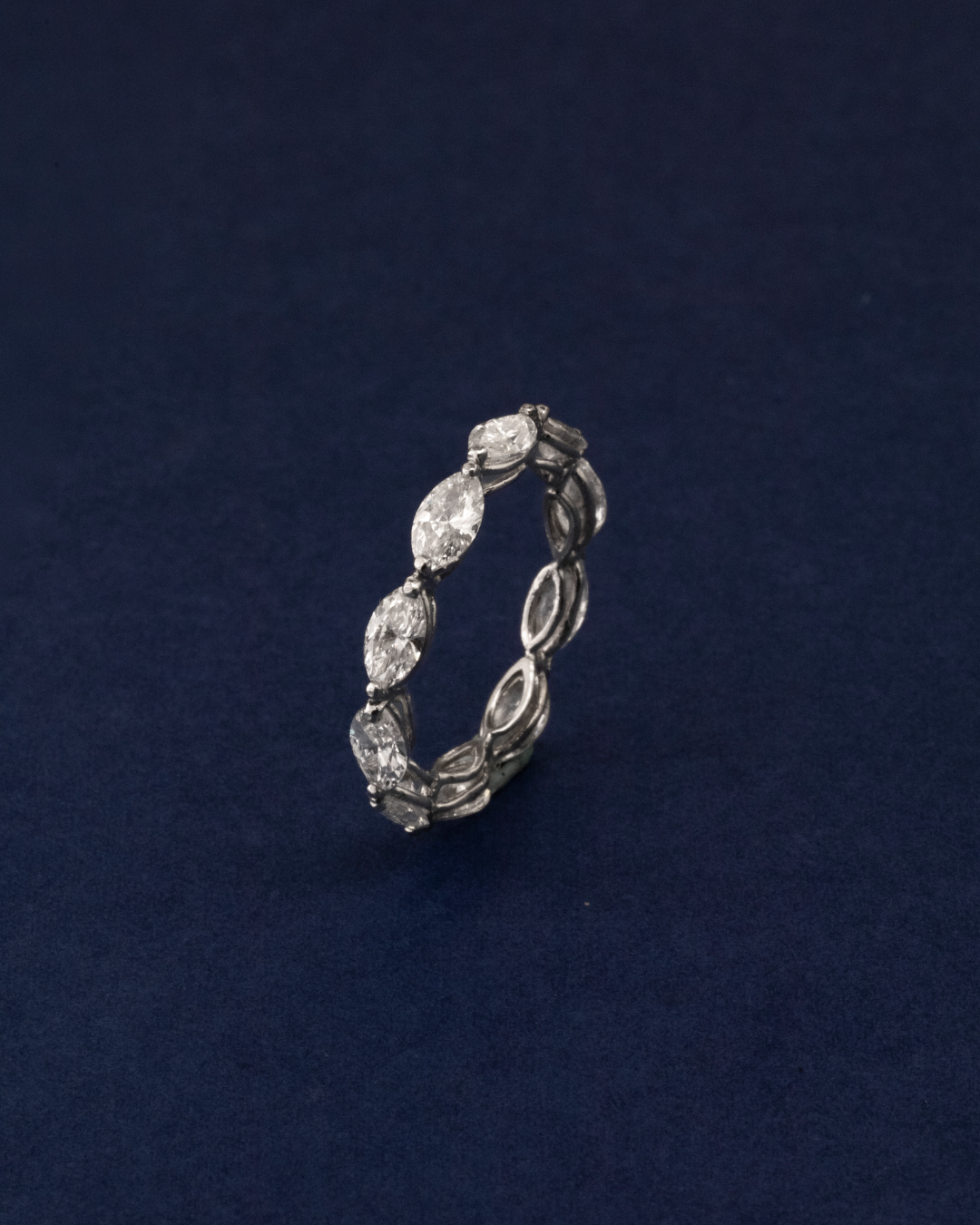 Crafted in 1.69 grams of 18K white gold, this size 56 ring exudes refined sophistication and striking elegance. Ten marquise-cut diamonds, totaling 3.16 carats, are meticulously set to create a dynamic, elongated sparkle that captures light from every angle. Each diamond is selected for VS–SI clarity and GH color, ensuring a brilliant, luminous finish that enhances the sleek white gold band.