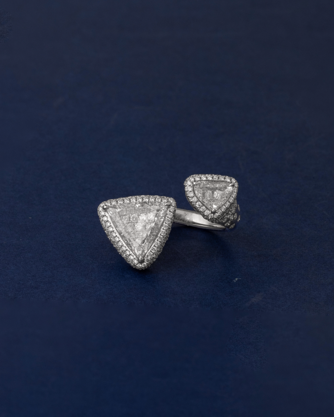 Featuring two beautifully matched rose-cut diamonds, this piece highlights the soft, luminous glow that defines this historic cut. Set in a graceful contemporary design, the ring exudes elegance and refined sophistication—perfect for those who appreciate brilliance with a vintage soul.