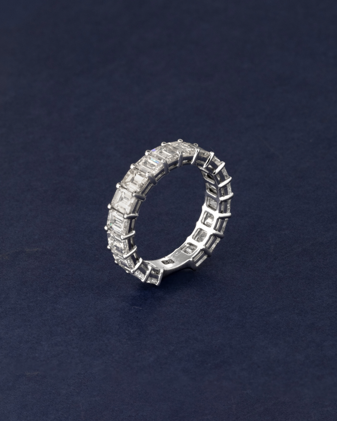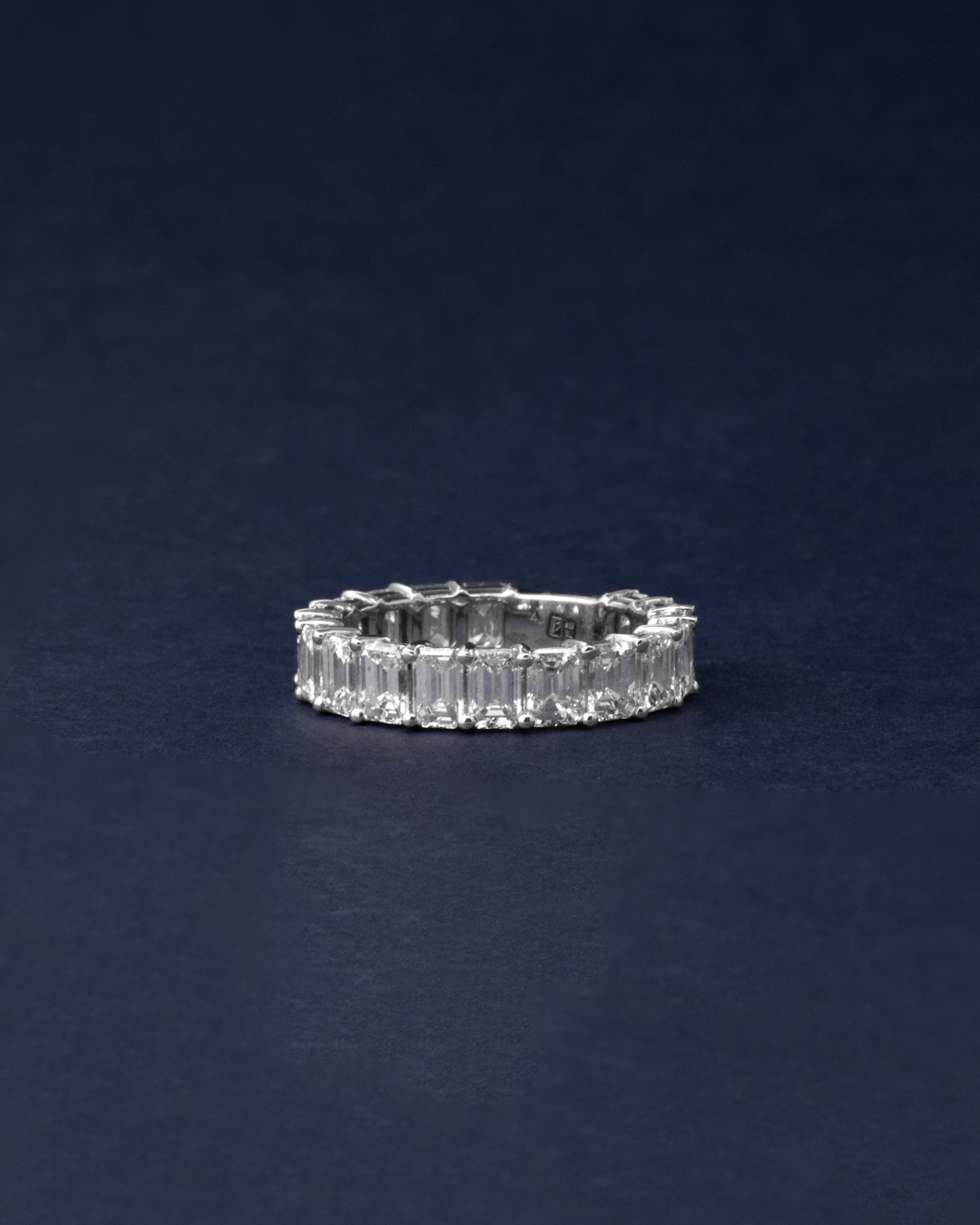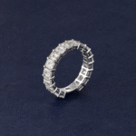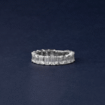 Each emerald-cut diamond is meticulously set to highlight its mirror-like facets and elongated elegance, creating a band that radiates refined brilliance from every angle. Luxurious and architecturally stunning, this ring is designed for those who appreciate pure diamond beauty in its most elegant form.