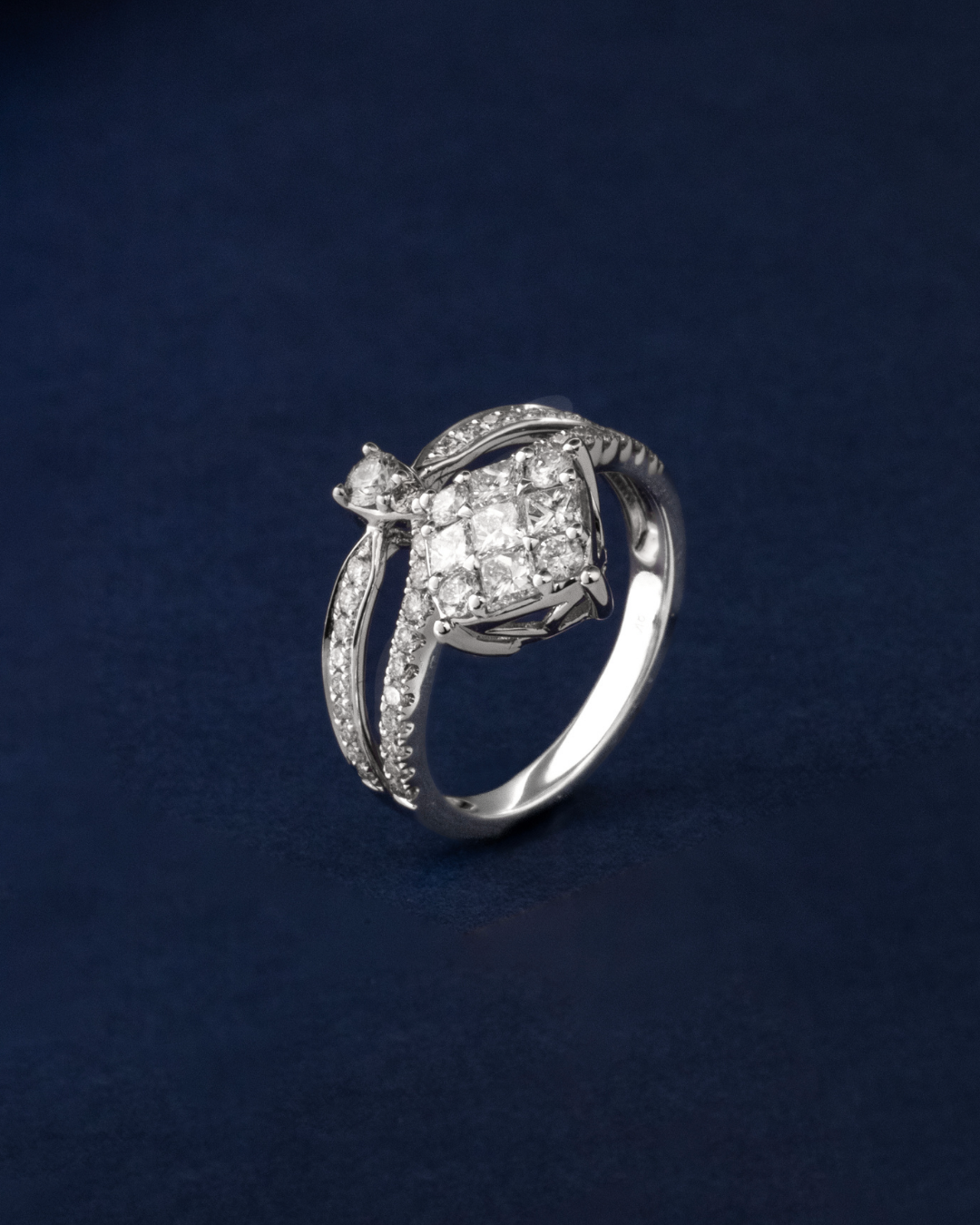 Crafted in 18K white gold and weighing 4.56 grams, this elegant ring is designed in size 53, offering refined brilliance in a timeless design.