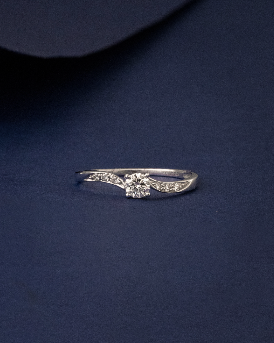 The pear-cut diamonds form a graceful arrangement, creating a refined shimmer that enhances the ring’s subtle elegance and luxurious appeal.