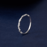 The carefully set round-cut diamonds create a gentle shimmer, enhancing the ring’s minimalist design while delivering timeless sophistication.
