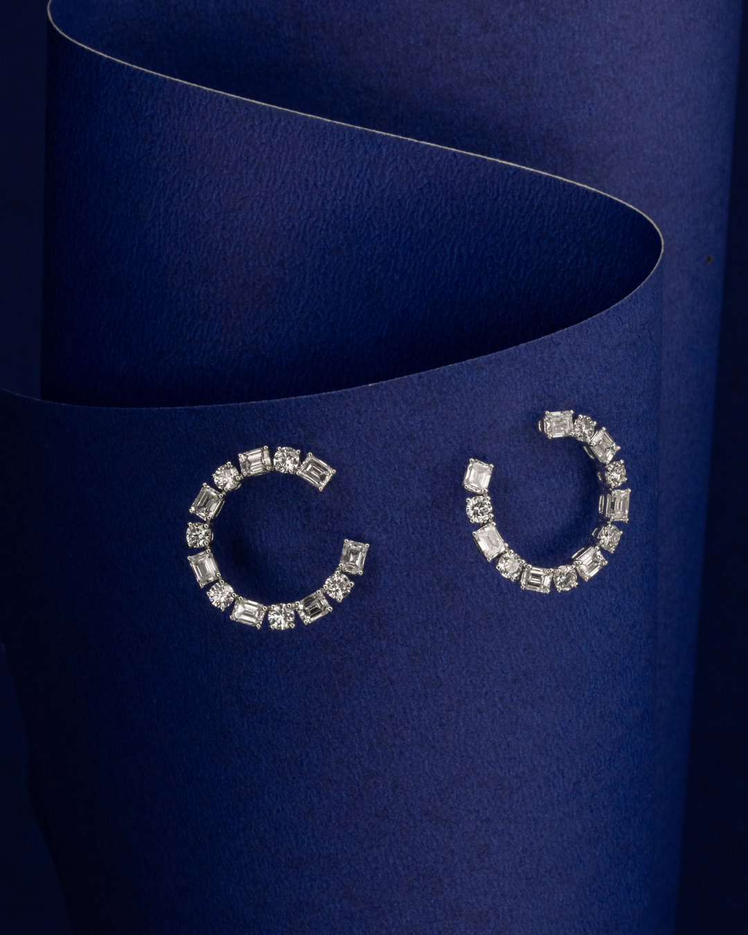 Crafted in 3.26 grams of 18K white gold, these earrings combine classic elegance with striking sparkle. The interplay of emerald-cut and round-cut diamonds creates a sophisticated design that captures and reflects light beautifully.