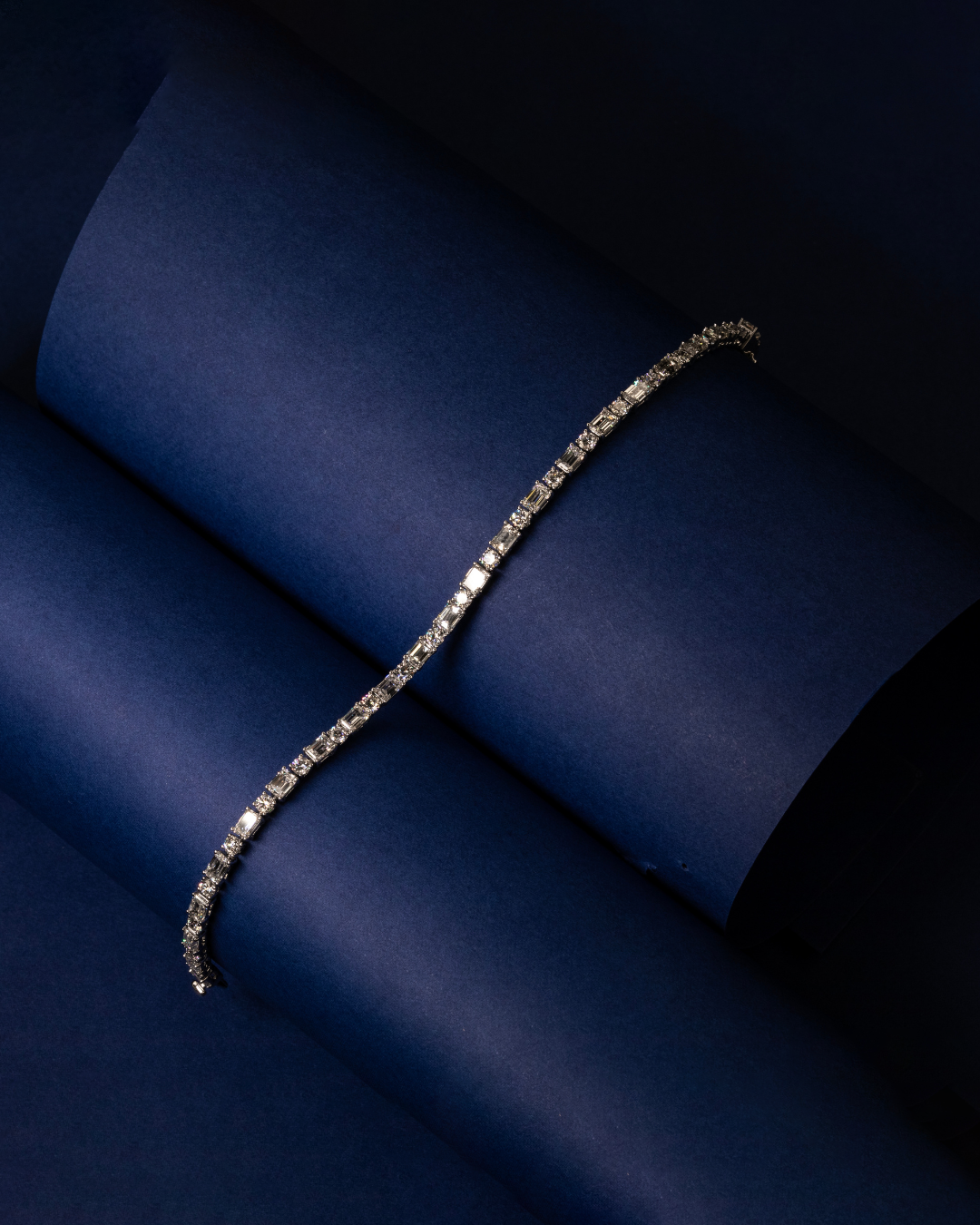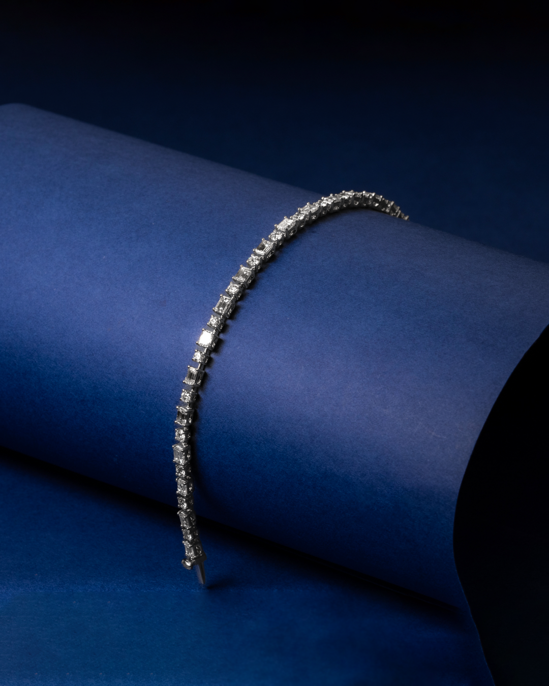 Crafted in 6.85 grams of 18K white gold, this stunning bracelet features 46 round-cut diamonds that sparkle with exceptional brilliance. The meticulous arrangement of stones enhances their fire and radiance, creating a luxurious and captivating design.