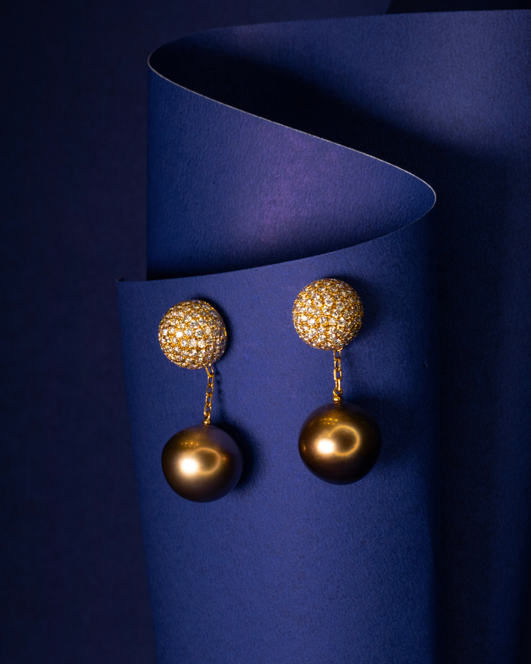 Crafted in 1.88 grams of 18K yellow gold, these earrings combine the classic sparkle of diamonds with the natural allure of brown pearls. Each stone is carefully selected to enhance brilliance, while the pearls add a warm, organic elegance to the design, resulting in a piece that is both refined and timeless.