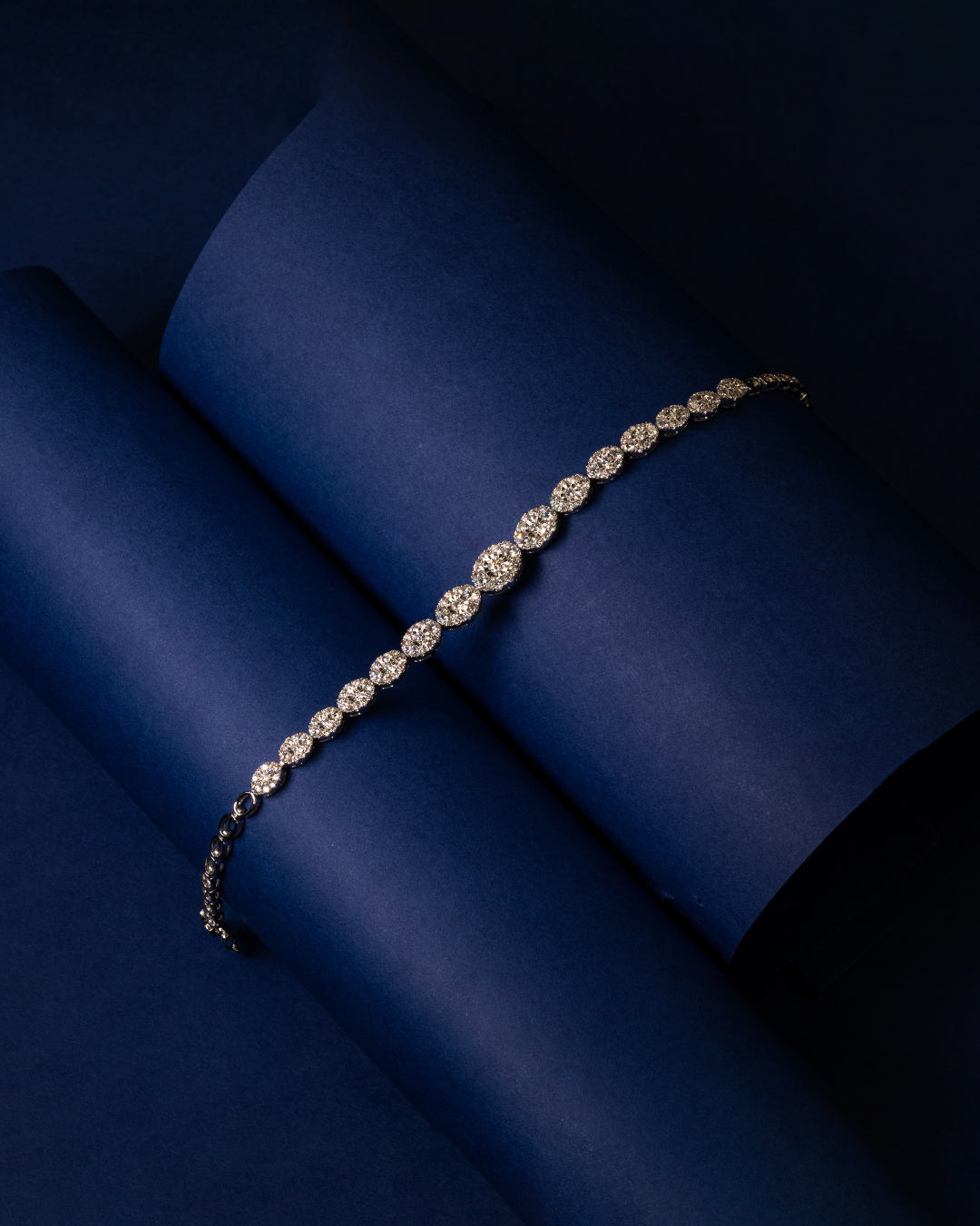 Crafted in 9.22 grams of 18K white gold, this elegant bracelet features 135 round-cut diamonds that sparkle with refined brilliance. The warm tone of the yellow gold beautifully complements the diamonds, creating a sophisticated and timeless design.